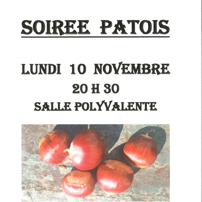 La traditionnelle veillée Patois organisée par les Amis de Salon se tiendra le lundi 10 novembre à 20h30 dans la salle polyvalente de Salon. Chacun pourra intervenir en langue limousine ; châtaignes blanchies et cidre doux seront offerts. Entrée libre. Préparez vos gnorles !